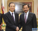 | 11月20日,國(guó)務(wù)院總理溫家寶在斯里巴加灣市會(huì)見(jiàn)文萊蘇丹哈桑納爾和王室主要成員。 |