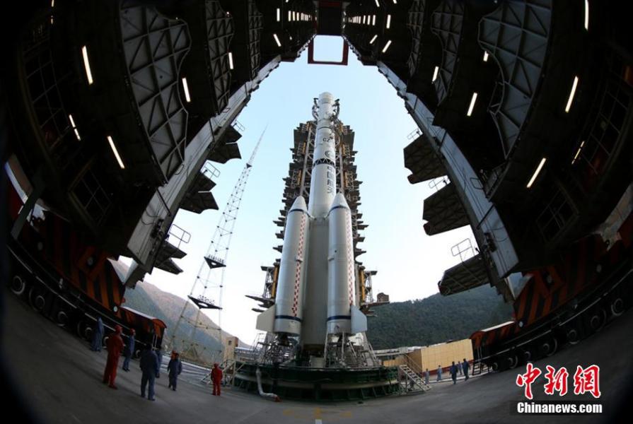 12月1日下午5時30分,勤務(wù)塔開始移離,做好發(fā)射準(zhǔn)備。中新社發(fā) 秦憲安 攝
