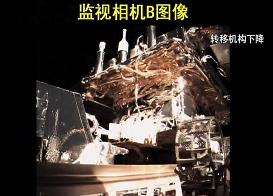 這是“嫦娥三號”著陸器巡視器正在進行分離的畫面。 12月15日4時35分,“嫦娥三號”著陸器巡視器成功分離。 新華社發(fā)(視頻截圖)
