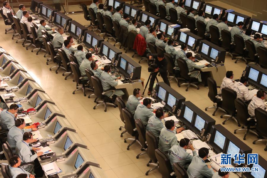 12月14日,嫦娥三號(hào)平穩(wěn)落月,中國(guó)首次地外天體軟著陸成功。這是北京飛行控制中心工作人員在監(jiān)控嫦娥三號(hào)落月過(guò)程。 新華社記者 王建民攝