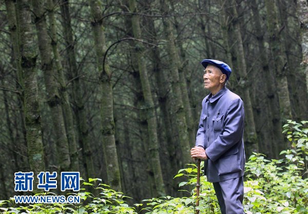 守望這片林子的楊善洲老人(資料照片)。新華社發(fā)