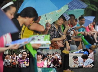 | 那邊全國的高考學(xué)生正在答卷,這邊互聯(lián)網(wǎng)上全國各地高考作文題目便已風(fēng)傳開來。微博時代,高考題目的信息傳得飛快,也許這是2012年高考最值得全社會關(guān)注的現(xiàn)象。 |