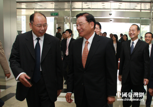 中國(guó)臺(tái)灣網(wǎng)10月29日北京消息 29日,臺(tái)灣;鶗(huì)董事長(zhǎng)江丙坤率領(lǐng)的;鶗(huì)新聞交流團(tuán)一行訪問人民日?qǐng)?bào)社。這是人民日?qǐng)?bào)社社長(zhǎng)張研農(nóng)迎接江丙坤一行的到來(lái)。(中國(guó)臺(tái)灣網(wǎng) 田云鵬 攝)