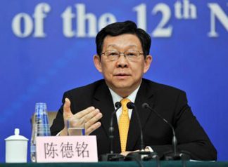 | 海峽兩岸關(guān)系協(xié)會(huì)第三屆理事會(huì)第一次會(huì)議26日在北京舉行,會(huì)議推舉產(chǎn)生新的領(lǐng)導(dǎo)機(jī)構(gòu)。前商務(wù)部部長(zhǎng)陳德銘接替陳云林,出任海協(xié)會(huì)會(huì)長(zhǎng)。生于1949年的陳德銘是上海人,1974年9月加入中國(guó)共產(chǎn)黨,是中共第十七屆中央候補(bǔ)委員,曾任中共蘇州市委書記、中共陜西省委副書記、陜西省省長(zhǎng)、國(guó)家發(fā)改委副主任、商務(wù)部部長(zhǎng)等職。 |