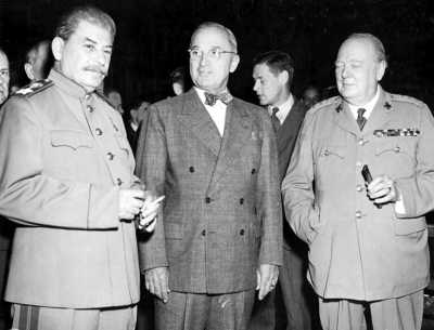 參加波茨坦會(huì)議的斯大林(左)、杜魯門(中)和丘吉爾。
