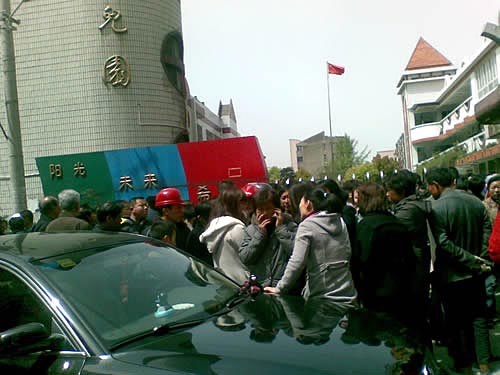 記者12時在現(xiàn)場看到,幼兒園大門已被封鎖,仍有數(shù)百群眾圍觀,門口馬路實行交通管制,法醫(yī)正在校園南側(cè)教學(xué)樓勘察。