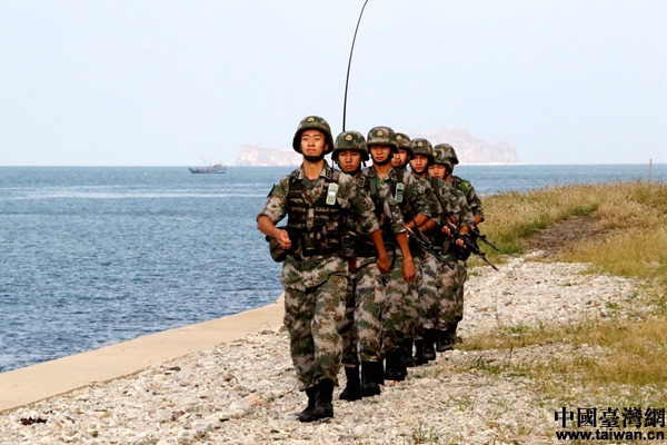 北部戰(zhàn)區(qū)陸軍某海防旅海防五連官兵演示島上巡邏課目。(中國臺灣網(wǎng) 尹賽楠 攝)