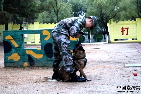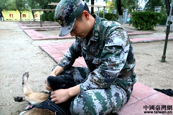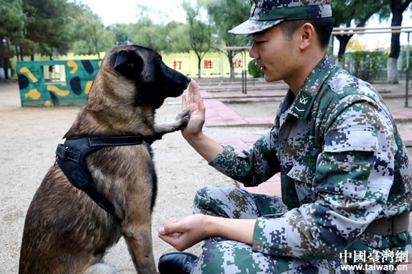 北部戰(zhàn)區(qū)陸軍某邊防旅“黑河好八連”軍犬訓(xùn)導(dǎo)員付平和他的軍犬“泰格”。(中國臺灣網(wǎng) 尹賽楠 攝)
