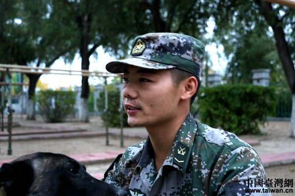 付平向記者講述他與軍犬的故事。(中國臺灣網(wǎng) 尹賽楠 攝)