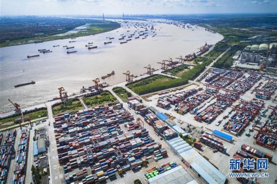 這是武漢長江中游航運(yùn)中心核心港陽邏港(2018年8月13日無人機(jī)拍攝)。新華社記者 肖藝九 攝