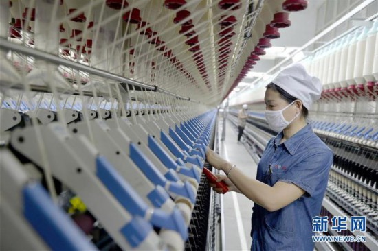 工人在河北邢臺(tái)經(jīng)濟(jì)開發(fā)區(qū)一家紡織企業(yè)的車間內(nèi)工作(2018年12月20日攝)。新華社記者 朱旭東 攝