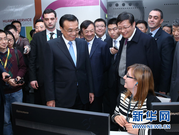 11月27日,正在羅馬尼亞訪問的國務(wù)院總理李克強參觀中國華為技術(shù)羅馬尼亞公司。這是李克強同當(dāng)?shù)貑T工親切交談。新華社記者 龐興雷攝