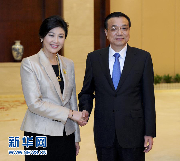9月2日,國務(wù)院總理李克強在南寧會見前來出席第十屆中國-東盟博覽會暨中國-東盟商務(wù)與投資峰會的泰國總理英拉。 新華社記者 張鐸 攝