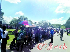 本報訊 當?shù)貢r間13時,本報記者步行到比勒陀利亞一處公園,排隊等候前往聯(lián)邦政府大廈。但在這處等候的公園里,已經(jīng)有至少5000人在此排隊等候。據(jù)悉,不少人前一天晚上就已經(jīng)在這里等候了。