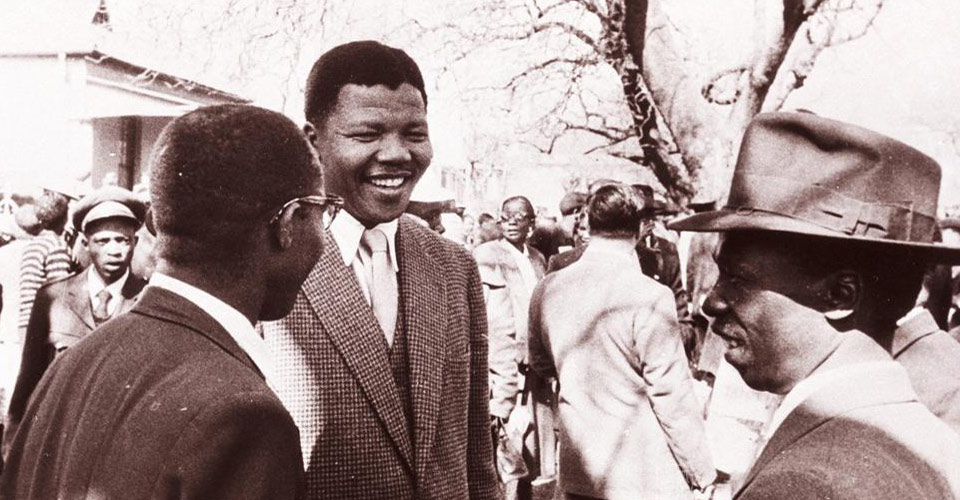 在約翰內(nèi)斯堡,曼德拉先后干過金礦保安、律師事務(wù)所學(xué)徒、律師,并目睹了南非種族隔離制度的野蠻和黑暗。他義無反顧地投身于南非人民的解放事業(yè)。早在1944年,曼德拉參加了"非洲人國民大會(huì)"(簡稱非國大),并參與組建了"非洲人國民大會(huì)青年團(tuán)"。他先后擔(dān)任過德蘭士瓦省非洲人國民大會(huì)主席、全國非洲人國民大會(huì)第一副主席、全國非洲人國民大會(huì)主席。圖為1950年晚些時(shí)候,曼德拉與兩名"叛國罪"同犯聊天。
