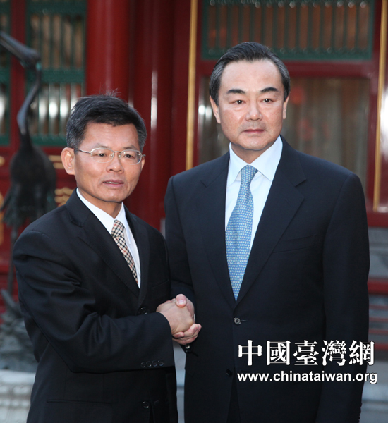 3月22日下午,中共中央臺辦主任王毅在北京釣魚臺賓館會見來訪的臺灣前高雄縣長楊秋興一行。。ㄖ袊_灣網(wǎng) 田云鵬 攝)