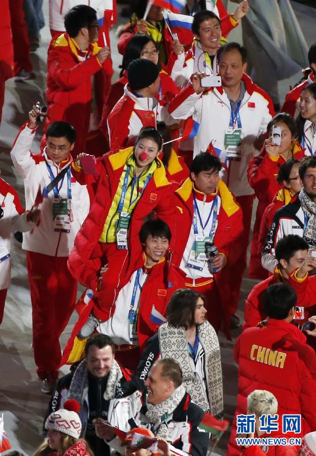 2月23日,中國花樣滑冰組合龐清、佟健與隊(duì)友在閉幕式上入場(chǎng)。當(dāng)日,第22屆冬奧會(huì)閉幕式在菲施特奧林匹克體育場(chǎng)舉行。 新華社記者王麗莉攝
