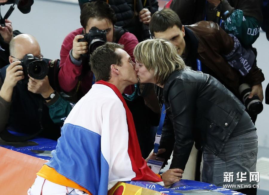 2月12日,荷蘭選手格魯胡伊斯(左)奪冠后與愛人熱吻。當(dāng)日,在阿德爾滑冰館舉行的2014年索契冬奧會(huì)速度滑冰男子1000米比賽中,荷蘭選手格魯胡伊斯以1分08秒39的成績奪得冠軍。新華社記者王麗莉攝