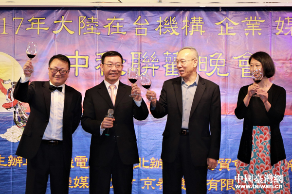 在中秋佳節(jié)到來之際,機(jī)電商會臺北辦事處會同海貿(mào)會臺北辦事處、京泰發(fā)展有限公司、大陸駐臺媒體聯(lián)誼會,于2017年9月28日在臺北聯(lián)合主辦了“2017大陸在臺機(jī)構(gòu)、企業(yè)、媒體中秋聯(lián)歡晚會”,40多家大陸在臺機(jī)構(gòu)、企業(yè)和10多家大陸駐臺媒體的代表及家屬近180人參加了聯(lián)歡晚活動(dòng)。(中國臺灣網(wǎng)發(fā) 機(jī)電商會臺北辦事處供圖)