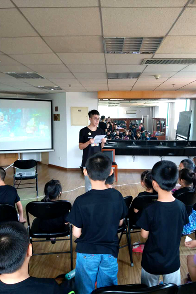 臺灣學生呂雨樵在為小朋友講解注意事項。
