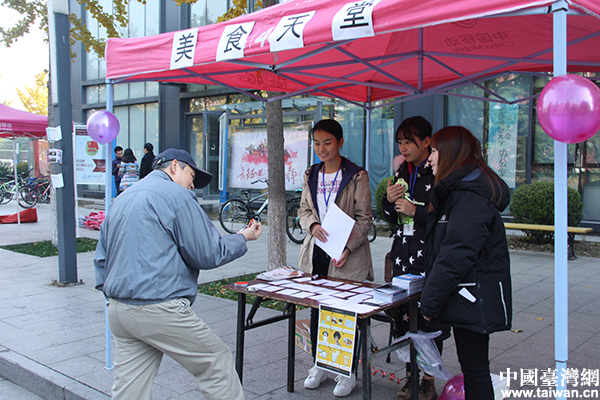 中國(guó)臺(tái)灣網(wǎng)11月12日訊(記者 崔瀝心)流行的粵語歌曲,追過的港臺(tái)影視,機(jī)智的互動(dòng)問答,經(jīng)典的武俠劇配音,誘惑的美食天堂,奇幻的景點(diǎn)觀光,熱辣的舞臺(tái)表演……今日,為打破地域的限制,拉近兩岸四地青年的距離,讓學(xué)子足不出校,深度體驗(yàn)港澳臺(tái)文化,北京師范大學(xué)第三屆港澳臺(tái)文化節(jié)開幕活動(dòng)港澳臺(tái)一條街在邱季端體育館門前舉行。