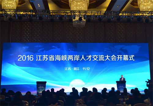 11月12日,2016江蘇省海峽兩岸人才交流大會在蘇州市吳江區(qū)舉行。大會由江蘇省臺辦聯(lián)合省人社廳、團(tuán)省委主辦,國臺辦經(jīng)濟(jì)局、全國青聯(lián)秘書處擔(dān)任指導(dǎo)單位,包含2016江蘇省海峽兩岸人才交流大會開幕式、海峽兩岸青年就業(yè)創(chuàng)業(yè)論壇和海峽兩岸青年人才專場招聘會三項(xiàng)內(nèi)容。兩岸青年人才、臺灣部分大學(xué)及大陸校友會、臺灣知名人力資源機(jī)構(gòu)、江蘇16家兩岸青年創(chuàng)業(yè)就業(yè)基地平臺代表等參會。國臺辦經(jīng)濟(jì)局局長張世宏、蘇州市委副書記朱明及江蘇省臺辦、國資委、團(tuán)省委相關(guān)負(fù)責(zé)同志等出席活動。