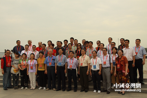 中國(guó)統(tǒng)促會(huì)第十次海外會(huì)長(zhǎng)會(huì)部分與會(huì)嘉賓在佳木斯市松花江畔合影留念。(中國(guó)臺(tái)灣網(wǎng) 徐維彬 攝)