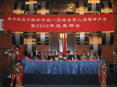 2010年1月19日,塞爾維亞中國和平統(tǒng)一促進(jìn)會在貝爾格萊德舉行第二屆理事大會暨2010年迎春酒會,中國駐塞爾維亞大使魏敬華、塞爾維亞統(tǒng)促會理事、塞爾維亞華僑華人社團(tuán)代表、留學(xué)生、媒體記者等200余人出席。
