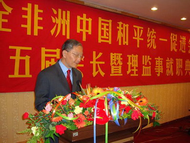 鐘建華大使在致辭中表示,全非洲中國和平統(tǒng)一促進會成立以來,一直堅決反對“臺獨”,團結擁護一切擁護祖國和平統(tǒng)一的全非華僑華人,在全非大陸十幾個國家成立和統(tǒng)會,已成為非洲大陸一面反獨促統(tǒng)的旗幟。
