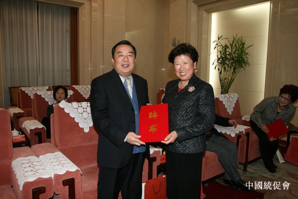 11月19日,中國統(tǒng)促會在中央統(tǒng)戰(zhàn)部舉行八屆理事會各專門委員會主任、副主任頒發(fā)聘書儀式。中央統(tǒng)戰(zhàn)部副部長、統(tǒng)促會秘書長尤蘭田出席儀式并講話,統(tǒng)促會執(zhí)行副秘書長李路主持儀式。