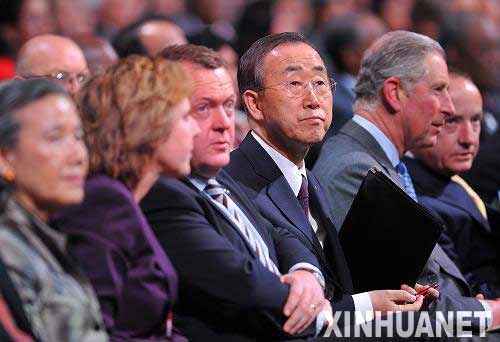 12月15日,在丹麥?zhǔn)锥几绫竟?lián)合國(guó)秘書(shū)長(zhǎng)潘基文(右三)、丹麥?zhǔn)紫嗬鼓律ㄓ宜模、英?guó)王儲(chǔ)查爾斯王子(右二)等出席聯(lián)合國(guó)氣候變化大會(huì)高層會(huì)議開(kāi)幕式。當(dāng)天,氣候變化大會(huì)開(kāi)始進(jìn)入高層會(huì)議階段。新華社記者武巍攝