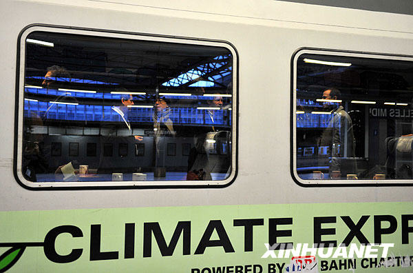 12月5日,在比利時(shí)布魯塞爾火車站,“氣候快車”準(zhǔn)備出發(fā)。這列“氣候快車”當(dāng)天從這里出發(fā),途中?康聡坡『蜐h堡,最終抵達(dá)丹麥的哥本哈根。這列藍(lán)色和綠色涂裝的火車上載有400多人,包括聯(lián)合國氣候變化大會(huì)的與會(huì)代表、聯(lián)合國官員、環(huán)保人士和記者等。此次活動(dòng)由國際鐵路聯(lián)盟、聯(lián)合國環(huán)境規(guī)劃署、世界自然基金會(huì)等組織共同發(fā)起,意在喚起人們關(guān)注公共交通給氣候帶來的影響和宣傳乘坐火車的環(huán)保益處。新華社記者徐速繪攝