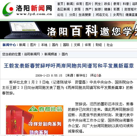 賀辭說,回首2008年,兩岸關(guān)系玉汝于成,峰回路轉(zhuǎn)。展望2009年,兩岸關(guān)系方向明確,前景光明。在新的一年里,中共中央臺辦、國務(wù)院臺辦將堅定不移地堅持中央對臺大政方針,全面貫徹落實(shí)胡錦濤總書記重要講話精神,牢牢把握兩岸關(guān)系和平發(fā)展的主題,不斷開創(chuàng)兩岸關(guān)系和平發(fā)展的新局面。