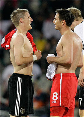 網(wǎng)易體育6月28日報道:德國4-1大比分在南非世界杯八分之一決賽淘汰英格蘭,比分頗為巨大,但因為上半場烏拉圭裁判拉里昂達扼殺蘭帕德一個明顯的吊射入網(wǎng)的“進球”,這已經(jīng)成為世界杯史上最具爭議的判罰和比賽之一。賽后,德國門將諾伊爾承認(rèn)他已經(jīng)看到皮球越過門線,但假裝若無其事地迅速開球發(fā)動進攻,愚弄了裁判,促成了這次被法新社譽為“世界杯其中一個最著名的誤判”。而在比賽結(jié)束時,德國中場施魏因斯泰格也主動找到受害者蘭帕德,向他道歉,并且與之交換球衣。