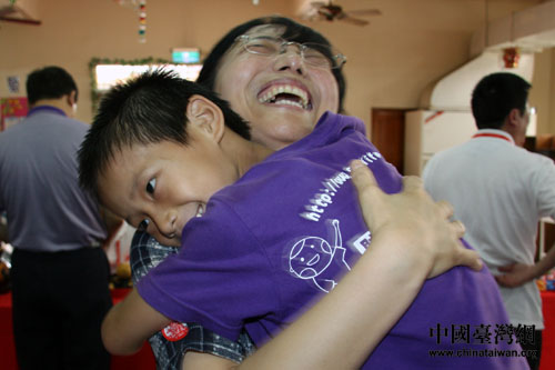 一位小朋友緊緊的抱住北京臺辦新聞處處長金秀清。