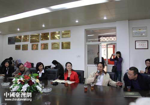 臺灣嘉賓走進(jìn)貴陽扎佐鎮(zhèn)醫(yī)藥園區(qū)參觀考察,圖為貴陽市臺辦副主任劉筑琪正在介紹來賓(貴陽市臺辦 李慶斌 攝)