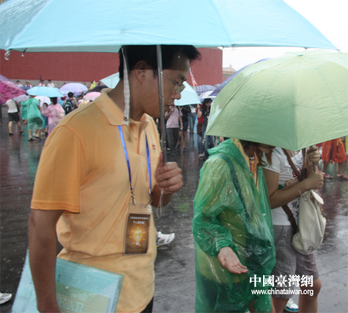 中國臺灣網(wǎng)7月17日北京消息 突降的一場傾盆大雨并沒有澆熄臺胞青年們游覽故宮的如火熱情,今天一早,臺胞青年千人夏令營的營員們便興致勃勃地來到了故宮博物院參觀游覽。