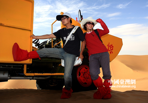 在騰格里大沙漠留影多有紀念意義!武波 攝 (圖片來源:寧夏臺辦)