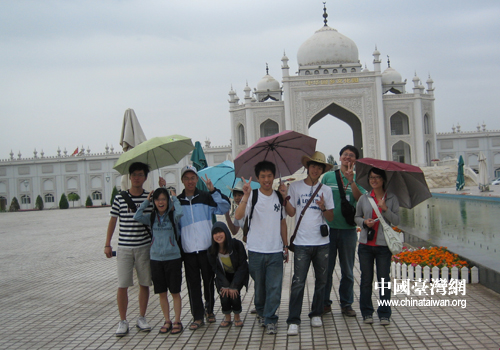 臺(tái)灣同學(xué)在雨中仍然興致勃勃(圖片來(lái)源:寧夏臺(tái)辦)