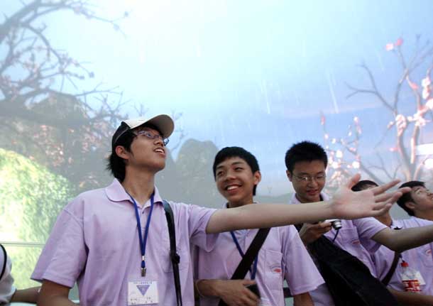 2010滬臺青少年“走進世博千人夏令營”活動正在上海舉行,來自滬臺兩地的1600多名師生參觀上海世博會,在交流中盡享世博精彩。
