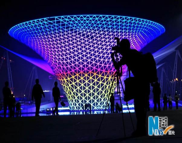 5月1日晚,一名參觀者在上海世博園世博軸“陽(yáng)光谷”前拍攝夜景。5月1日,上海世博園正式開園,全天入園人數(shù)超過(guò)20萬(wàn),一直到深夜,園區(qū)內(nèi)的游客仍然絡(luò)繹不絕,夜色中的世博園景致迷人,越夜越美麗。新華社記者尹棟遜攝