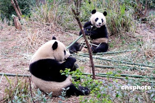 資料圖片:12月22日,在四川省雅安市“中國(guó)保護(hù)大熊貓研究中心雅安碧峰峽基地”,“團(tuán)團(tuán)”、“圓圓”歡快度過在家鄉(xiāng)最后一日。 中新社發(fā) 張國(guó)軍 攝