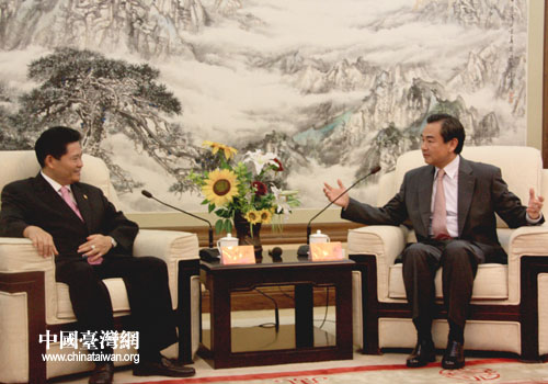國臺(tái)辦主任王毅今天下午在京會(huì)見臺(tái)灣媽祖聯(lián)誼會(huì)參訪團(tuán)。(中國臺(tái)灣網(wǎng) 張弛 攝)