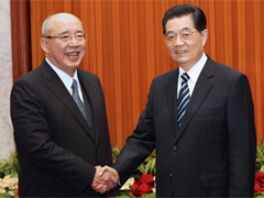 3月22日,中共中央總書記胡錦濤在京會(huì)見中國國民黨榮譽(yù)主席吳伯雄,強(qiáng)調(diào)在反對(duì)“臺(tái)獨(dú)”、認(rèn)同“九二共識(shí)”基礎(chǔ)上推動(dòng)兩岸關(guān)系和平發(fā)展,符合兩岸同胞的共同愿望,符合中華民族的整體利益,符合時(shí)代發(fā)展進(jìn)步的潮流。我們應(yīng)該沿著這條正確道路繼續(xù)向前邁進(jìn),不斷鞏固成果、深化合作,努力再創(chuàng)新局。吳伯雄表示,國民黨堅(jiān)持“九二共識(shí)”、反對(duì)“臺(tái)獨(dú)”。根據(jù)雙方現(xiàn)行體制和相關(guān)規(guī)定,兩岸都堅(jiān)持一個(gè)中國,在此基礎(chǔ)上求同存異。