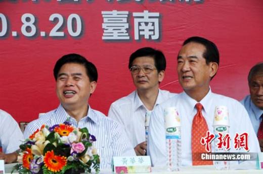 8月20日,“臺灣·廣東周”現(xiàn)場采購臺灣農(nóng)產(chǎn)品啟運儀式在臺灣臺南縣走馬瀨農(nóng)場舉行,廣東省省長黃華華、臺灣親民黨主席宋楚瑜等出席儀式,當天現(xiàn)場采購并交付啟運各類農(nóng)產(chǎn)金額達30多萬美元。中新社記者 梁永強 攝