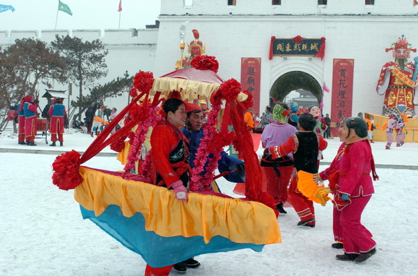 這是沈陽(yáng)關(guān)東廟會(huì)上的秧歌表演