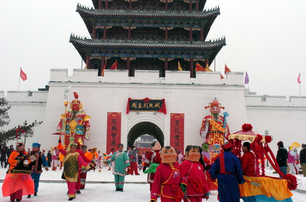 1月11日,沈陽關(guān)東廟會(huì)在位于棋盤山風(fēng)景旅游開發(fā)區(qū)的關(guān)東影視城向游人開放。主辦方在廟會(huì)期間將舉辦對春聯(lián)、貼窗花年畫、四平燈市等民俗活動(dòng),呈現(xiàn)出上世紀(jì)二三十年代沈陽城獨(dú)特的關(guān)東風(fēng)情。(徐如光攝)