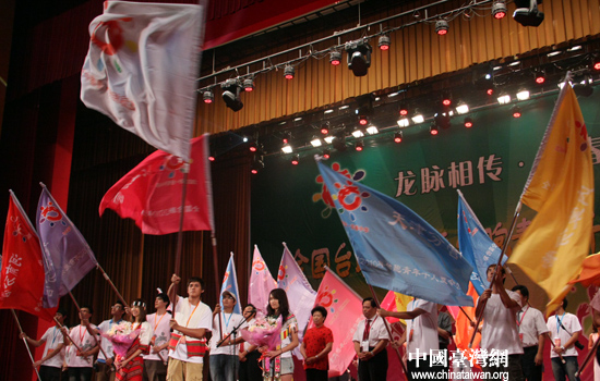 6日,全國臺聯(lián)2010年臺胞青年千人夏令營在北京舉行開營儀式。圖為營員揮舞營旗和團(tuán)旗。(中國臺灣網(wǎng) 張弛 攝)