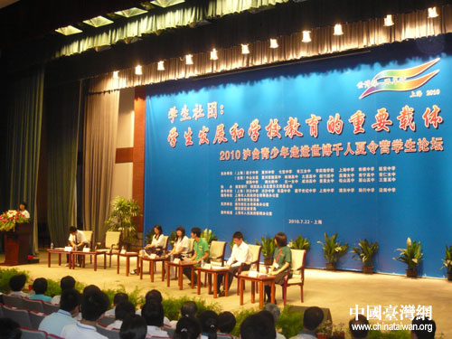 2010滬臺(tái)青少年走進(jìn)世博千人夏令營學(xué)生論壇在上海市進(jìn)才中學(xué)舉行。(上海市臺(tái)辦 鄧一飛 攝)