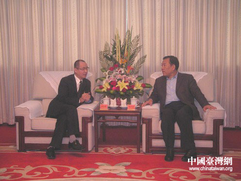 平頂山市委書記趙頃霖(右)會見臺商黃圣博。圖片來源:平頂山市臺辦